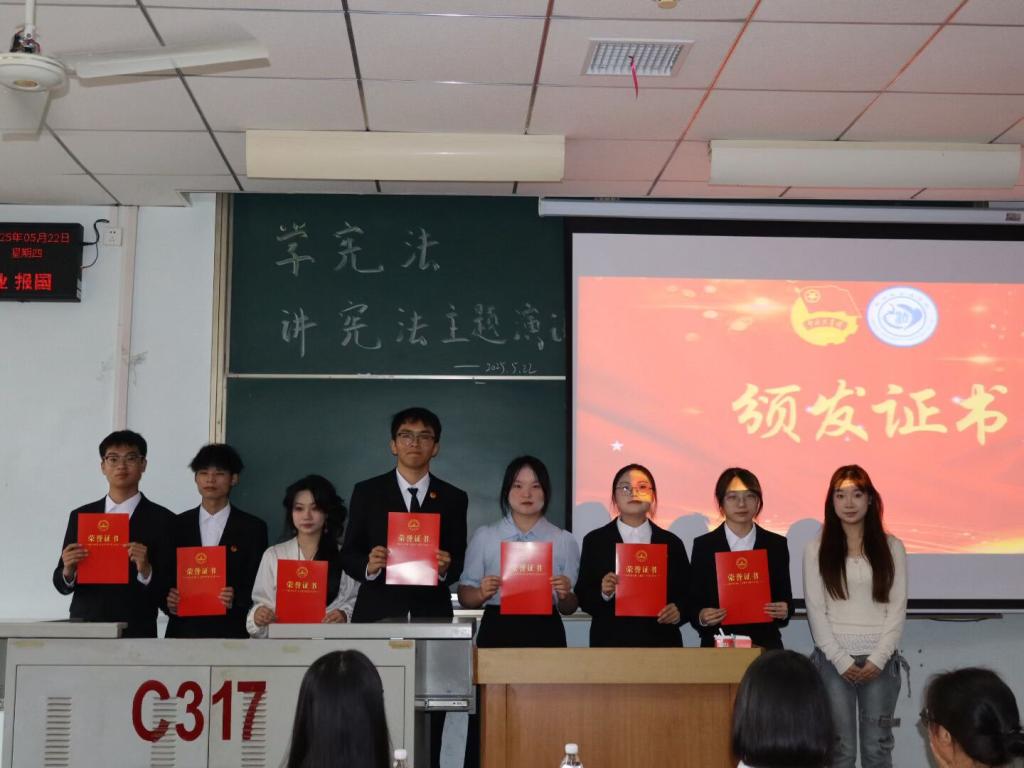 比赛间隙,评委团结合选手表现展开深度点评。评委们从演讲技巧切入,围绕舞台站位、语言节奏、案例选取等维度进行点评。院团委书记吴敏勉励同学们以赛促学,将宪法精神内化为法治信仰,外化为传播法治的实际行动。经过评委从演讲内容、逻辑架构、表达技巧、台风形象等多维度综合评审,比赛最终决出一等奖1名、二等奖4名、三等奖7名。