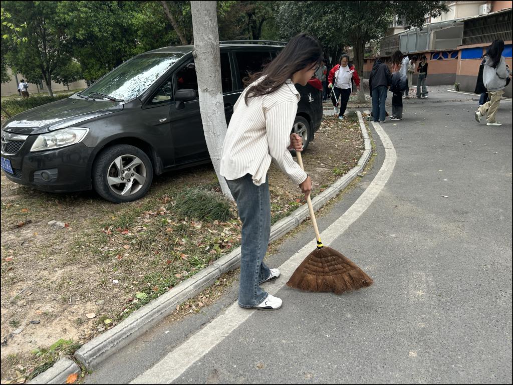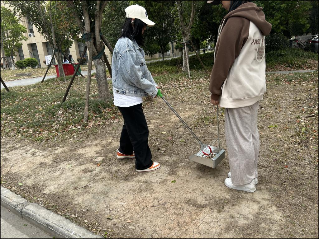 活动当天,大风阵阵,但同学们依旧佩戴统一的红色袖章,在指定地点快速集合分组。分发劳动工具后,大家顶着风势投入劳动:有的同学手持夹子,专注清理被风吹散的纸屑、烟头和塑料袋;有的同学挥动扫帚,细心清扫随风翻卷的落叶;带队老师和志愿者们也以身作则,与学生们默契配合,共同维护校园环境。