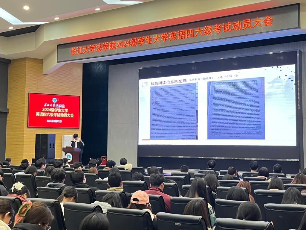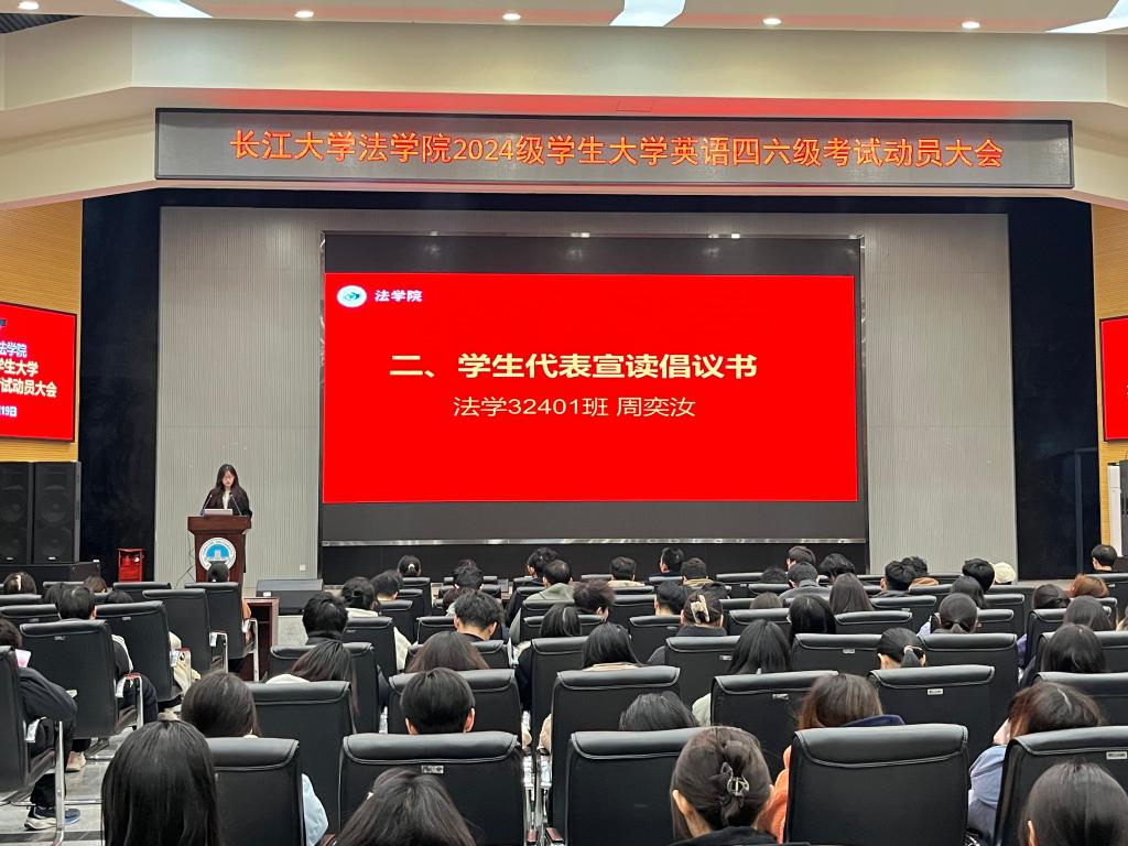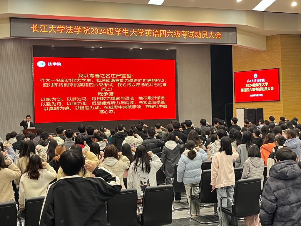 (通讯员 向若涵)3月19日,新葡萄8883官网AMG在西校区农科大楼1058学术报告厅召开大学英语四六级考试动员大会,2024级全体学生参加会议。大会以“明法致公强根基,语通世界展锋芒”为主题,通过学生榜样经验分享、集体宣誓、领导动员等环节,点燃了学子们的备考热情,为即将迎战四六级考试的全体学生注入了强大精神动力。