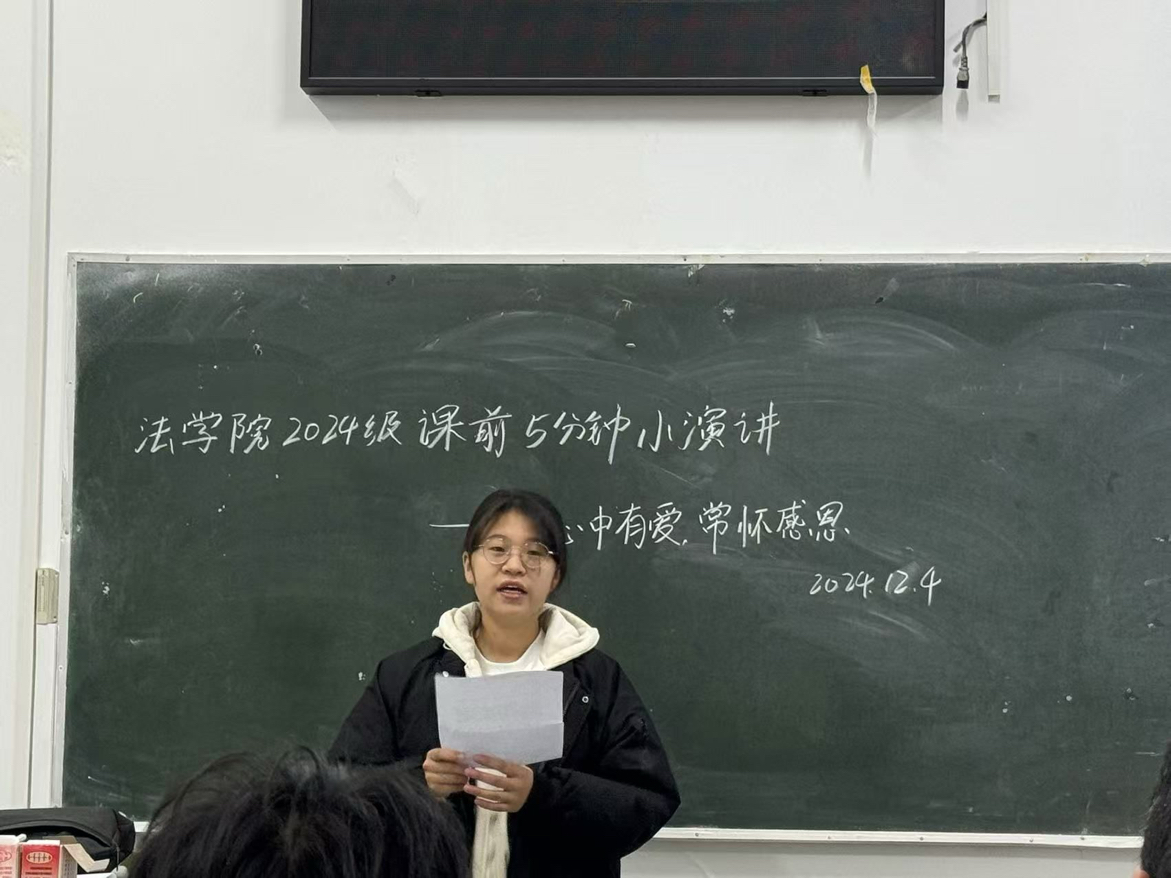 2024年12月2日至7日,新葡萄8883官网AMG迎来了一场别开生面的活动——2024级新生“心中有爱,常怀感恩”课前五分钟演讲。此次活动不仅为新生们提供了一个展示自我、抒发情感的舞台,更是一次深刻的心灵洗礼和价值观的塑造之旅。
