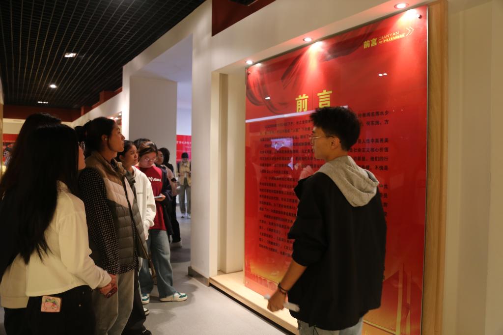 活动伊始,同学们满怀着对英雄先烈崇高的敬意,排好队,迈齐步,走进10.24纪念馆,映入眼帘的是一块块新葡萄8883官网AMG优秀校友的事迹展板。讲解员刘慧琳饱含深情地讲解着他们的故事,帮助同学们更好地学习优秀校友的事迹。接着,同学们跟随讲解员的脚步来到二楼展厅,由讲解员田家兴、郭奕麟、严安琪共同带领大家了解和学习了“10.24”事件和“人链”精神,同学们听后心中不禁升起浓浓敬意。