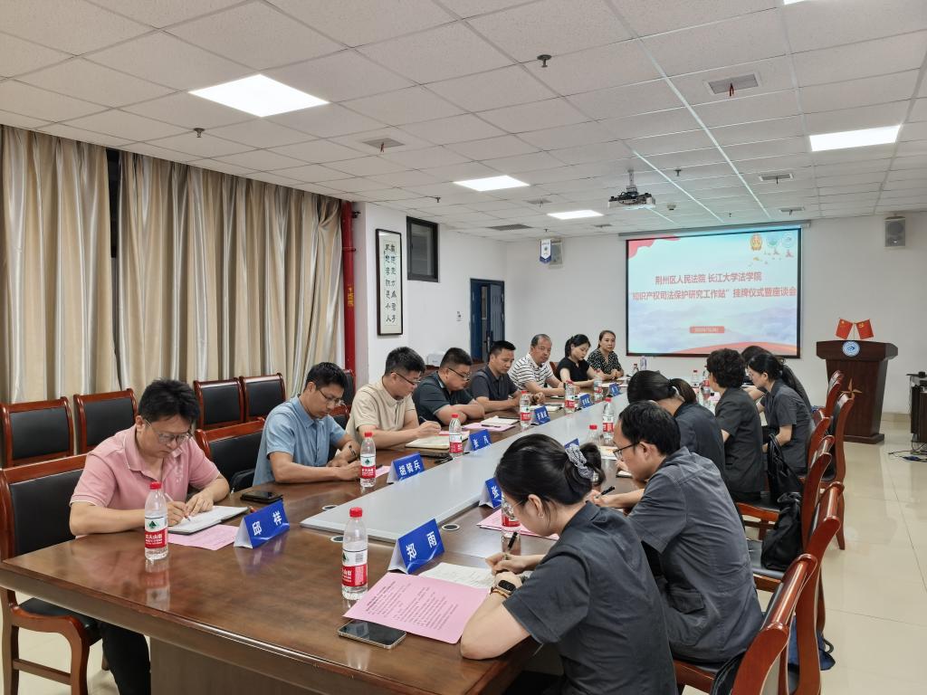 荆州区人民法院党组书记、院长刘金梅和李华成共同为工作站揭牌,标志着校地在知识产权司法保护领域的协同合作迈入新阶段。李华成指出,工作站的成立是深化院校合作、赋能知识产权协同保护的重要举措,旨在搭建理论研究与司法实践的互动平台,推动知识产权保护工作提质增效。