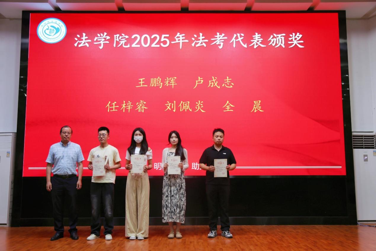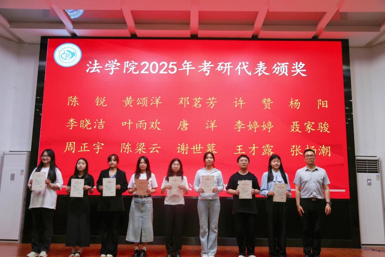 唐飞副院长首先进行了考研动员,他在充分肯定过去一年新葡萄官网学子在考研、法考中取得优秀成绩的基础上,鼓励2022级本科生发扬艰苦奋斗的拼搏精神,明确目标、勤奋学习、争创佳绩。随后,举行了颁奖仪式,杨院长为陈锐、黄颂洋等26名考研优秀代表颁奖,唐院长为王鹏辉、卢成志等5名法考通过代表颁奖。