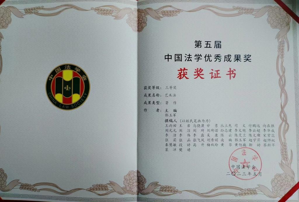 新葡萄8883官网AMG院长李华成教授参编的著作《艺术法》荣获三等奖。《艺术法》由武汉大学郭玉军教授主编,全书共24章,148万余字,分上下两册,由武汉大学出版社2019年出版。该书是国内首部《艺术法》教材,从艺术法的宏观框架到微观概念,从艺术法的历史脉络到前沿发展,从艺术法的基础理论到立法与司法实践,从艺术法的国内层面到国际层面,全方位地给予了里程碑式的呈现。