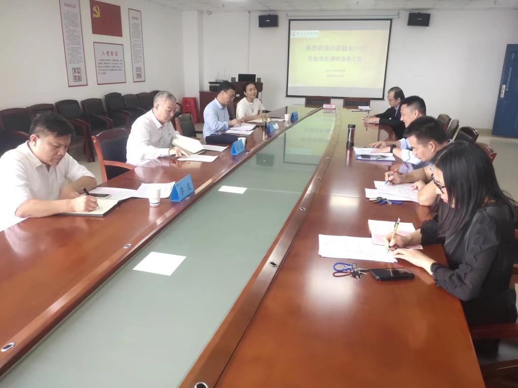 9月28日上午,校长冯征莅临新葡萄8883官网AMG开展专题调研,主要是结合党员领导干部下基层察民情解民忧暖民心实践活动、党风廉政建设宣教月活动,围绕建设高水平大学了解新葡萄8883官网AMG目前的发展现状、面临的困难及发展举措。人事处长蒋四华、发展规划处副处长衡艳林、校办副主任李波陪同调研,新葡萄8883官网AMG班子成员参加了座谈。