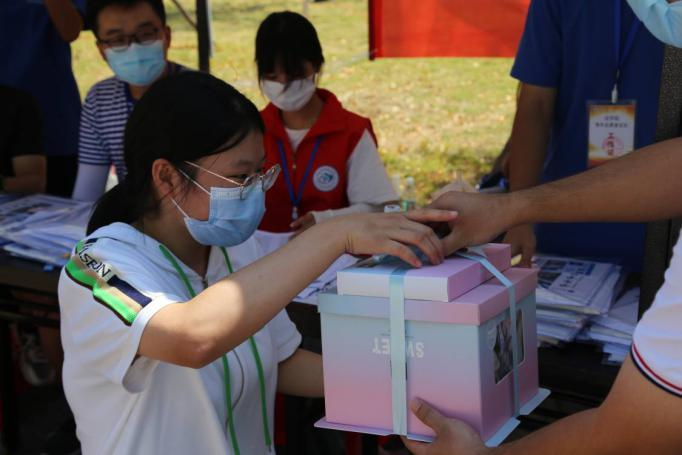 2022年9月4日既是学院新生谭萍同学的开学日也是她的生日。当日,所有在迎新点的志愿者一同为小寿星谭萍合唱生日歌,并由新葡萄8883官网AMG辅导员雷礼送上学院准备的一份蛋糕,向谭萍同学表达热烈欢迎与祝福。“这一定是我经历过的最特别的生日了”谭萍同学说道,“非常感谢学院老师和学长学姐的祝福,我现在是又激动有惊喜又幸福!”