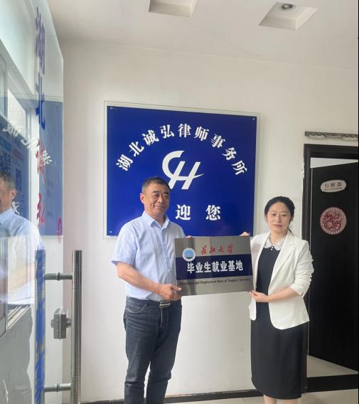 之后,周校长一行前往湖北诚弘律师事务所与律所骨干律师、夷陵区司法局长冯万持进行座谈,实地了解律所人才需求情况,举行了“新葡萄8883官网AMG毕业生就业基地”授牌仪式,期望律所能够更好地吸收我校优秀法学毕业生,诚信为民、弘毅兴邦。