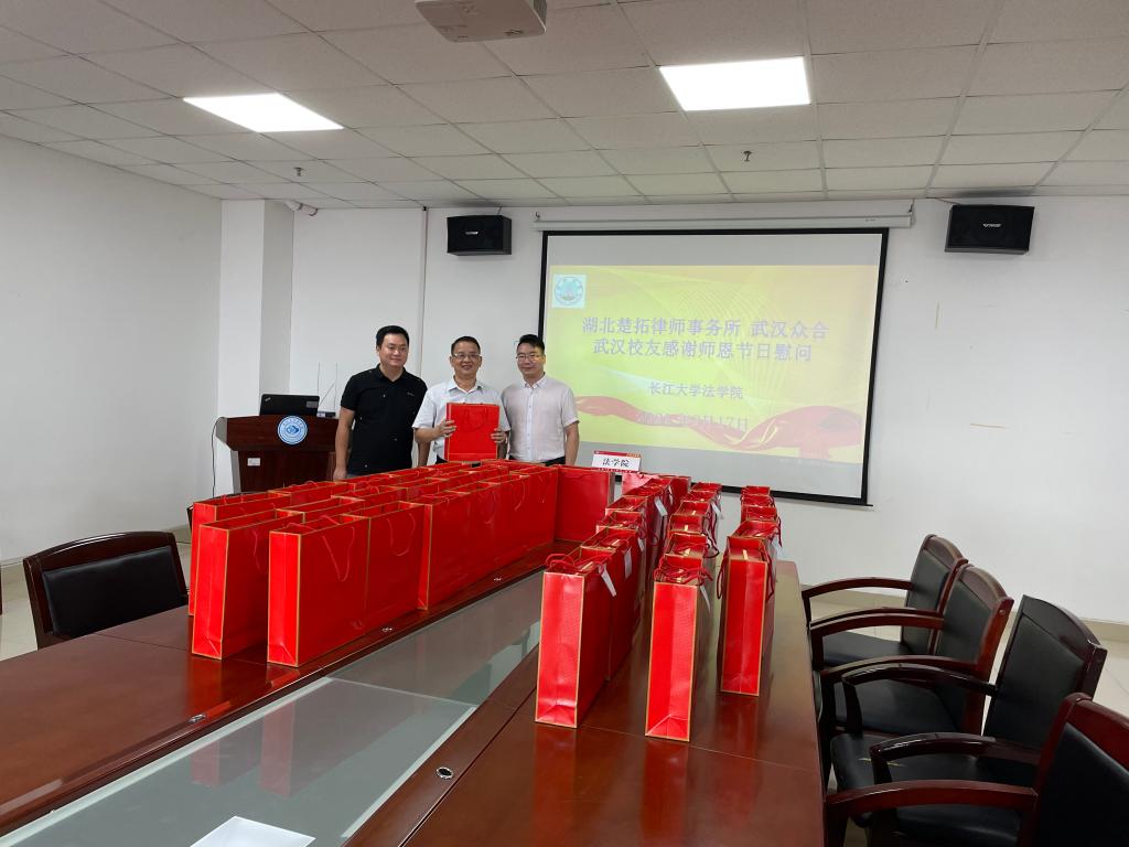 9月17日,为庆祝教师节和中秋节,湖北楚拓律师事务所、武汉众合的部分校友回校感谢师恩,为新葡萄8883官网AMG教师送上节日祝福。