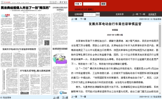 9月22日,《人民政协报》第12版刊发新葡萄8883官网AMG杨春磊博士的建言文章《发展共享电动自行车需包容审慎监管》。
