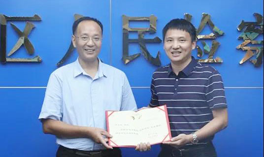 8月20日上午,新葡萄官网在沙市区检察院举行硕导聘任仪式,沙市区检察院党组书记、检察长何山权受聘新葡萄官网硕士研究生导师。双并就检校协同培养法治人才进行了交流。学院领导周胜美、李华成、彭泽君、实习实训中心主任陈群辉、院办主任魏波及沙市区检察院部分青年干警参会。