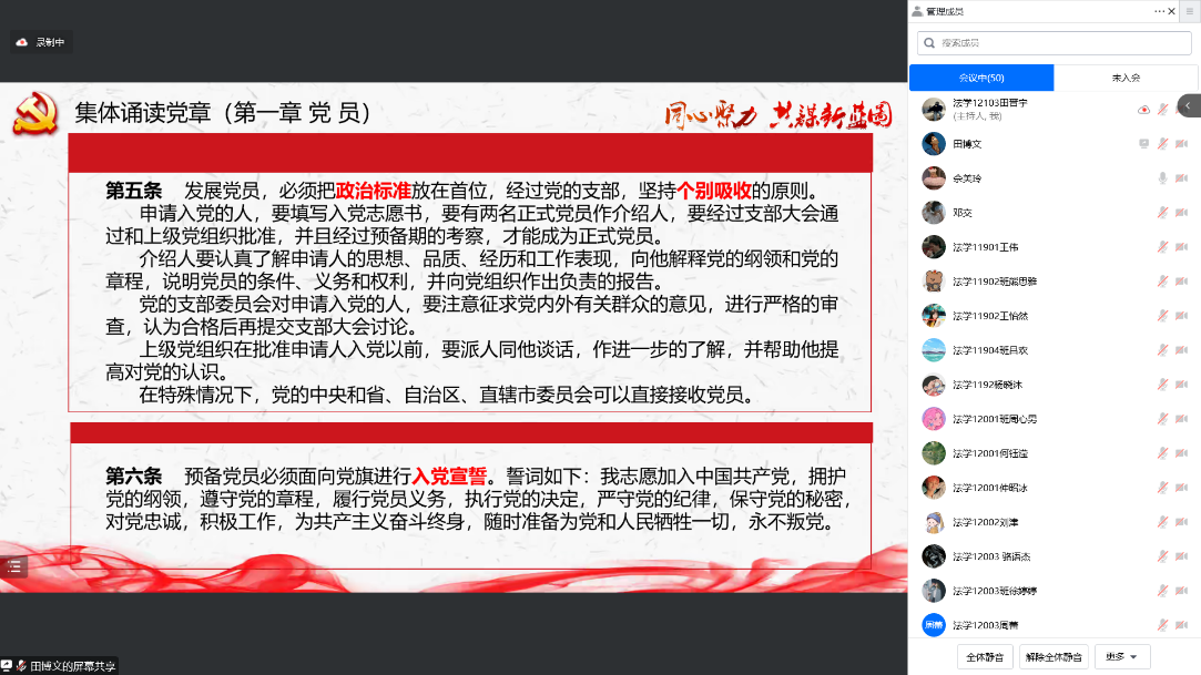 易海燕同志首先带领全体党员重温入党誓词,砥砺前进初心。全体党员通过诵读《党章》第一章“党员”,学习了党员的义务、权利、责任,对党员的先进性要求有了进一步理解。在理论学习环节,主持人带领全体党员学习了《习近平谈治国理政》第四卷第六至第十部分、中共中央政治局常务委员会会议上关于疫情防控工作的报告与部署、二十大代表路丙辉的光荣事迹、《中共新葡萄8883官网AMG委员会关于深入学习宣传贯彻党的二十大精神的通知》。