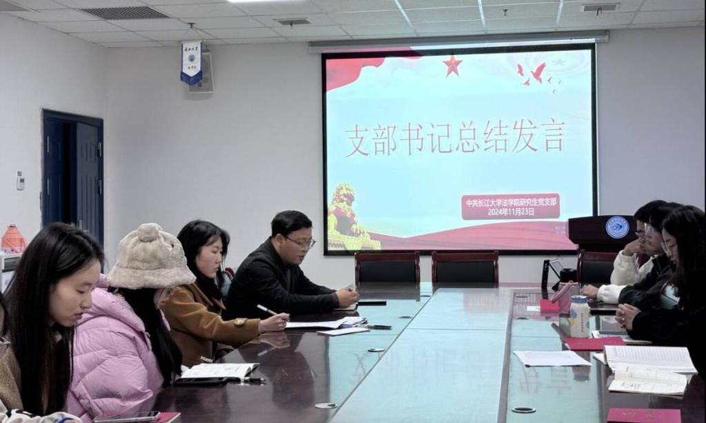 随后,11月支部主题党日活动在庄严的入党宣誓声中正式拉开帷幕。主持人田博文同志带领全体党员同志重温了入党誓词,并深入学习了《中国共产党章程》,共同回顾了党的光辉历程与伟大成就。同时,大家还认真学习了习近平总书记在湖北考察时的重要讲话精神,深刻领会其核心要义与实践要求。在主题研讨环节,方瑞、张润礼等党员同志积极发言,分享了自己的学习心得与体会。方瑞同志从法学专业角度出发,探讨了如何将重要讲话精神融入法治实践,为推进全面依法治国贡献智慧与力量;张润礼同志则着重分享了如何将重要讲话精神转化为实际行动,以更加饱满的热情、更加扎实的作风投入到学习和工作中去,为实现中华民族伟大复兴的中国梦贡献青春与汗水。