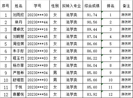 根据《新葡萄8883官网AMG普通本科生专业分流与转专业管理办法(试行)》(长大校发〔2019〕260号)文件以及本科生院《关于2023级普通本科生春季转专业工作的通知》要求,结合新葡萄8883官网AMG2023级本科生转专业工作方案的具体安排,新葡萄官网于3月9日组织了对拟转入学生的面试。综合必修课平均成绩和面试成绩,经新葡萄官网党政联席会讨论通过,现将拟接收名单公示如下: