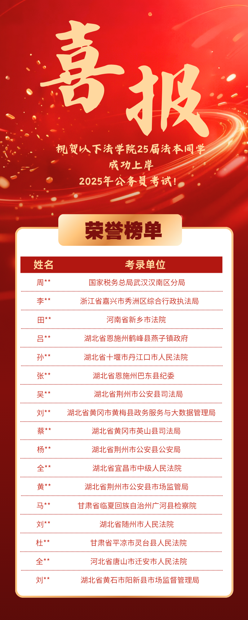 截至目前,新葡萄官网法学专业213名本科生中共有17人顺利通过公务员招录考试和政审,一次性考录率8%,创近年来新葡萄官网公务员考录率新高。