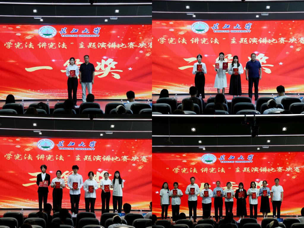 比赛间隙,评委们围绕演讲主题、语言节奏、案例选取等维度进行点评。杜厚杨、胡承武老师强调“小切口见大格局”,建议选手聚焦宪法在基层治理、民生保障中的具体实践,以 “一滴水折射太阳光辉” 的叙事方式,让宪法精神更具感染力。陈平老师则从演讲技巧切入,提出“节奏如乐章,肢体似语言” 的表达理念,鼓励选手通过张弛有度的讲述节奏与自然得体的肢体语言,增强演讲的共情力,并寄语同学们 “以赛为契机,让宪法信仰扎根心中,成为法治传播的青春使者”。最后,嘉宾们为获奖选手颁发荣誉证书,并合影留念。