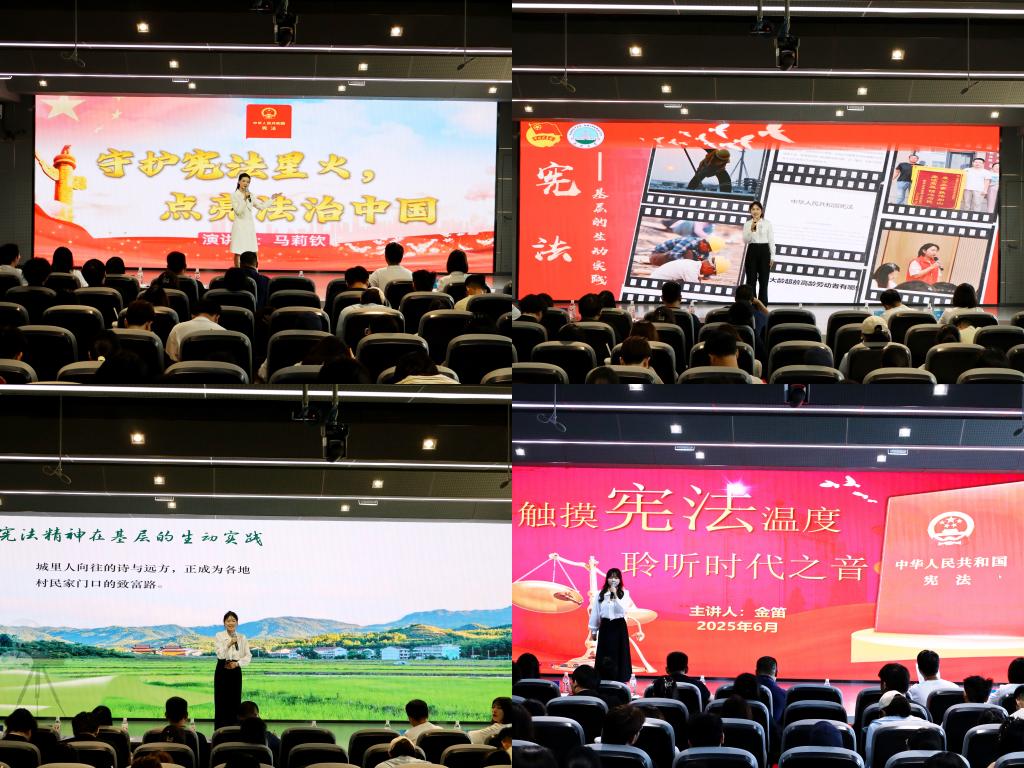 决赛现场,17位来自不同学院的参赛选手紧扣主题,以社会热点为镜,以亲身经历为笔,勾勒宪法的时代轮廓。马莉钦同学以亲历的社区服务为切入点,温情勾勒宪法出以润物无声的方式改善银发群体生活图景,让"宪法守护民生福祉"的抽象命题化作触手可及的温暖现实;王羿茹同学则选取劳动权益纠纷典型案例,以犀利的法律视角剖析宪法修正案如何为劳动者筑起“离线休息权”的法治屏障,深刻诠释宪法作为“治国安邦总章程、公民权利保证书”的时代内涵。其他参赛者亦聚焦校园法治建设,探讨“宪法与校园欺凌防治”、“宪法与反诈意识”,以青春视角解构宪法精神,用真挚情感传递法治信仰,赢得阵阵掌声。