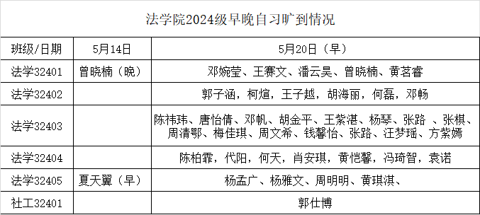 经核查,2025年5月14日、5月20日,曾晓楠等40名同学未请假不上早晚自习,具体名单如下: